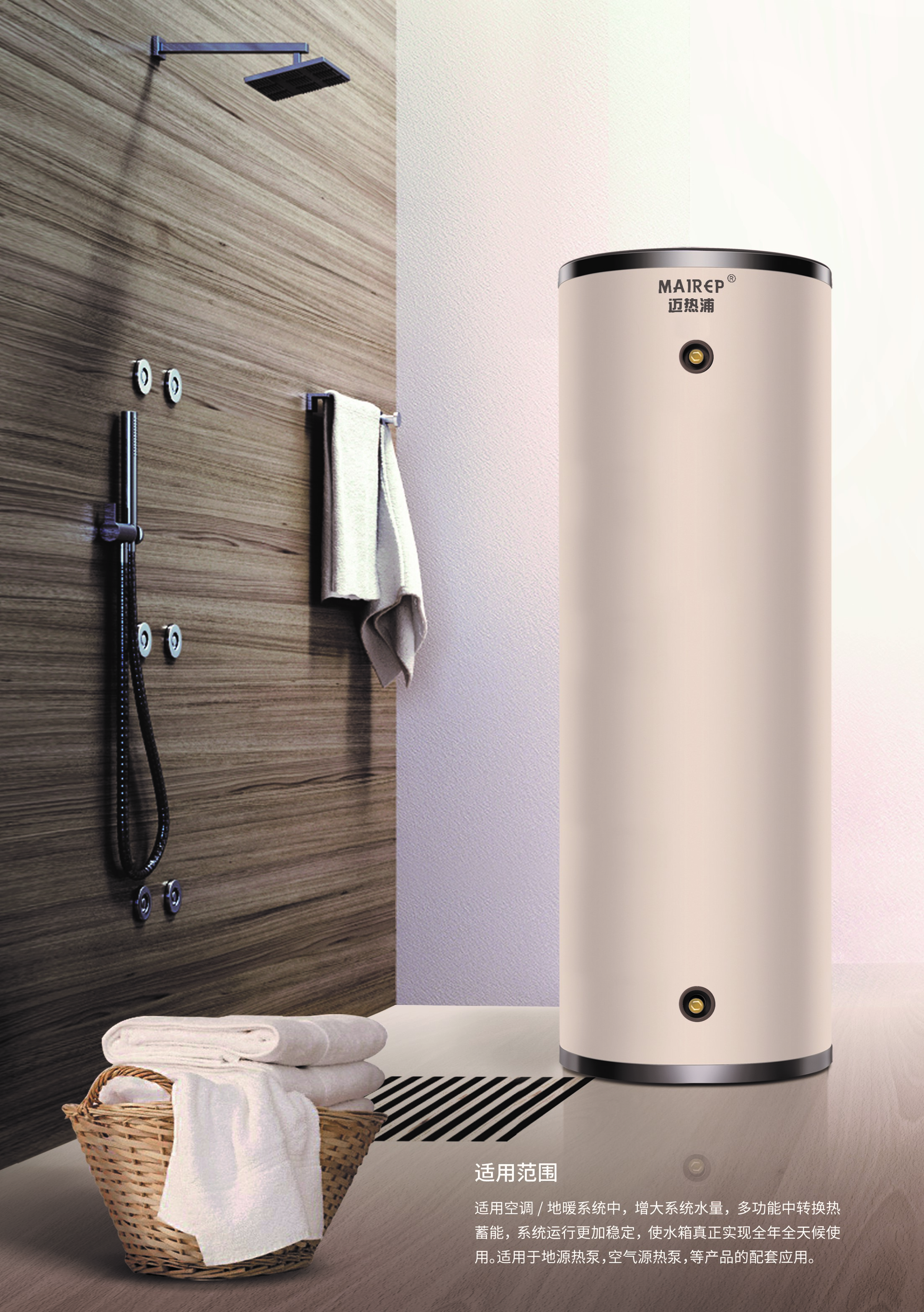 適用空調/地暖系統中,增大系統水量,多功能中轉換護蓄能,系統運行更加穩定,使水箱真正實現全年全天候用。適用于地源熱泵,空氣源熱泵,等產品的配套應用。